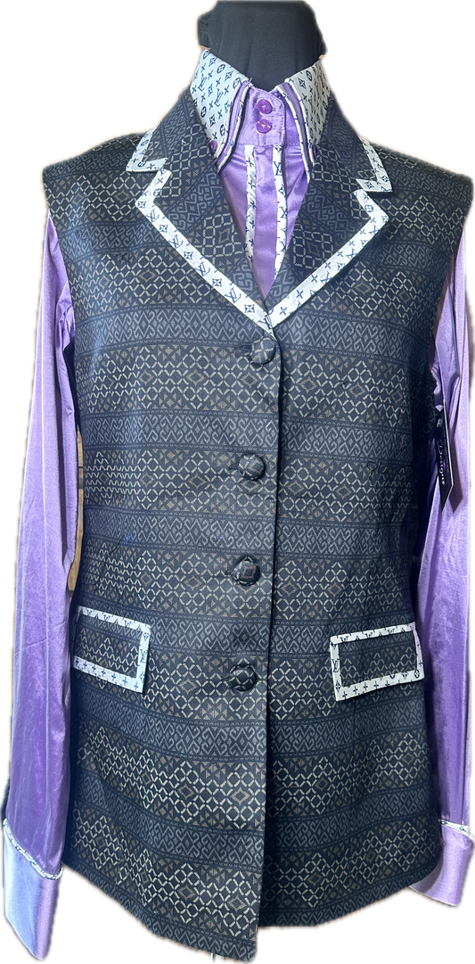 *40 Bust* Vest Set * Black plaid with matching shirt. Both have hidden zippers. LV print.