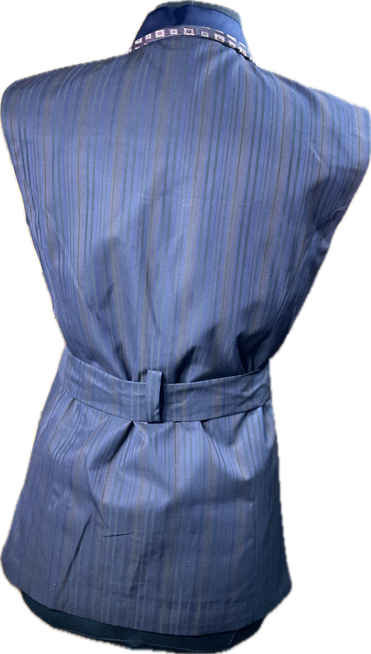 *36 Bust* Navy, black, red and royal blue stripe vest with matching geometric trims with belt option