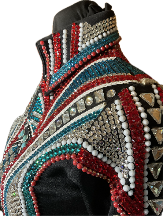 Extra Small Black Showmanship Jacket with Red and Turquoise Accents