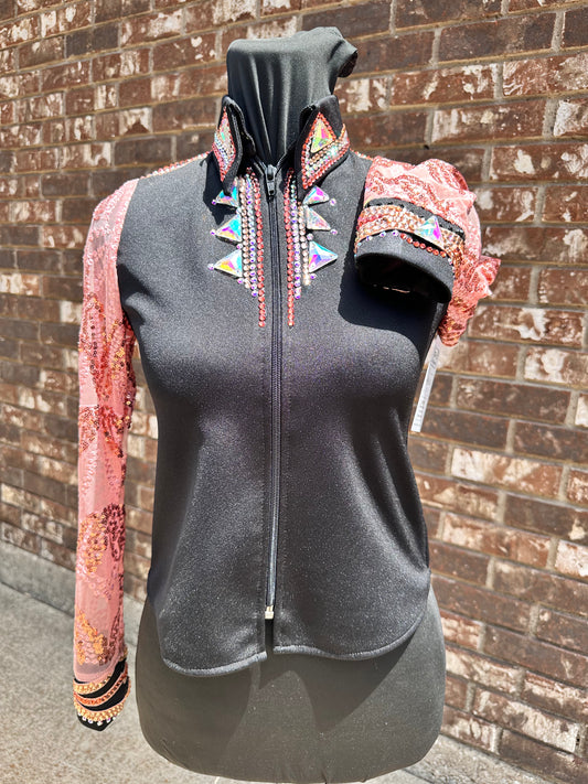 Kids size 8 stretch fabric back zip with leather lace sleeve