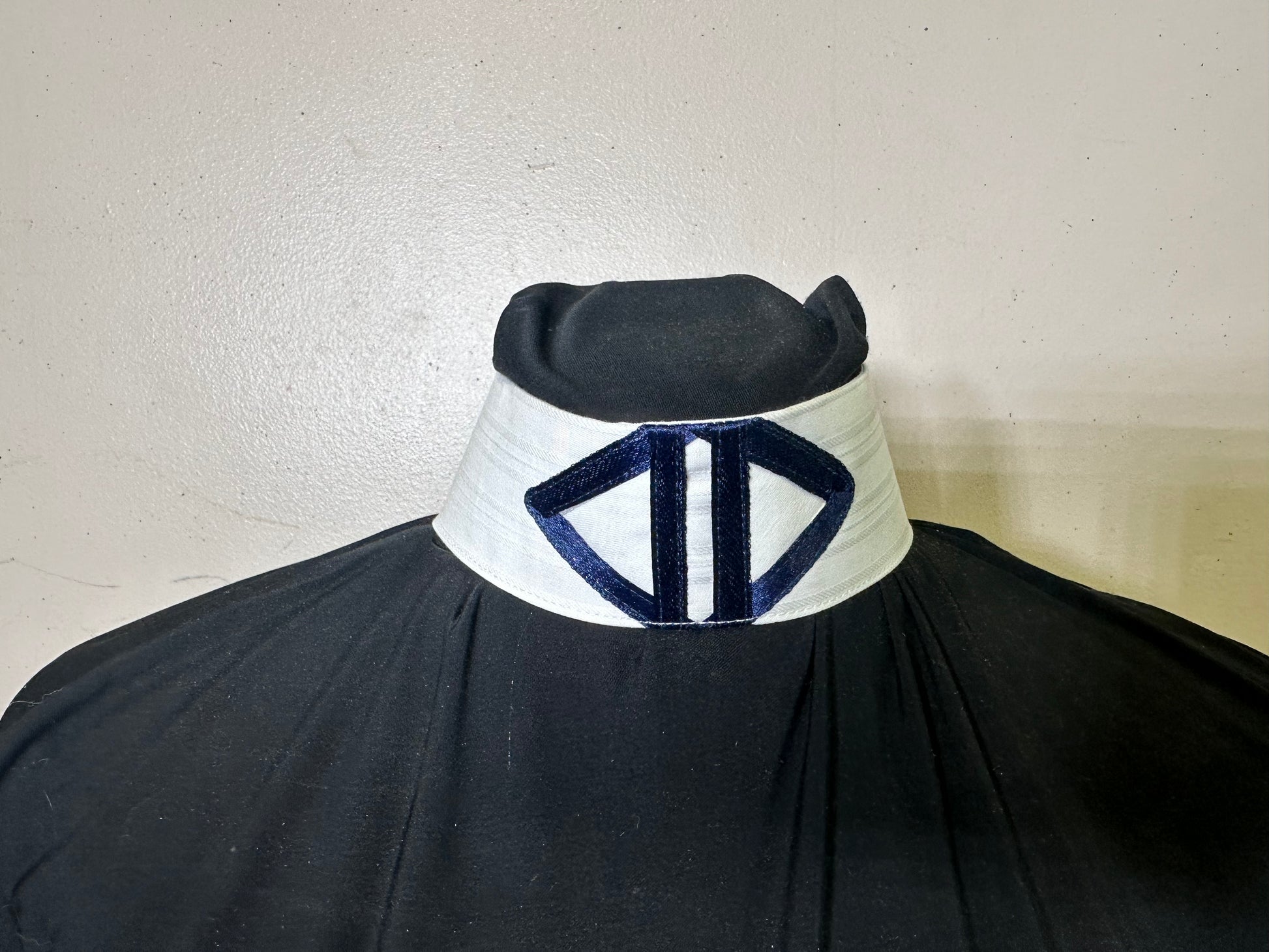 Size matches bust size. Collars attach to the top button of your hunt shirt.