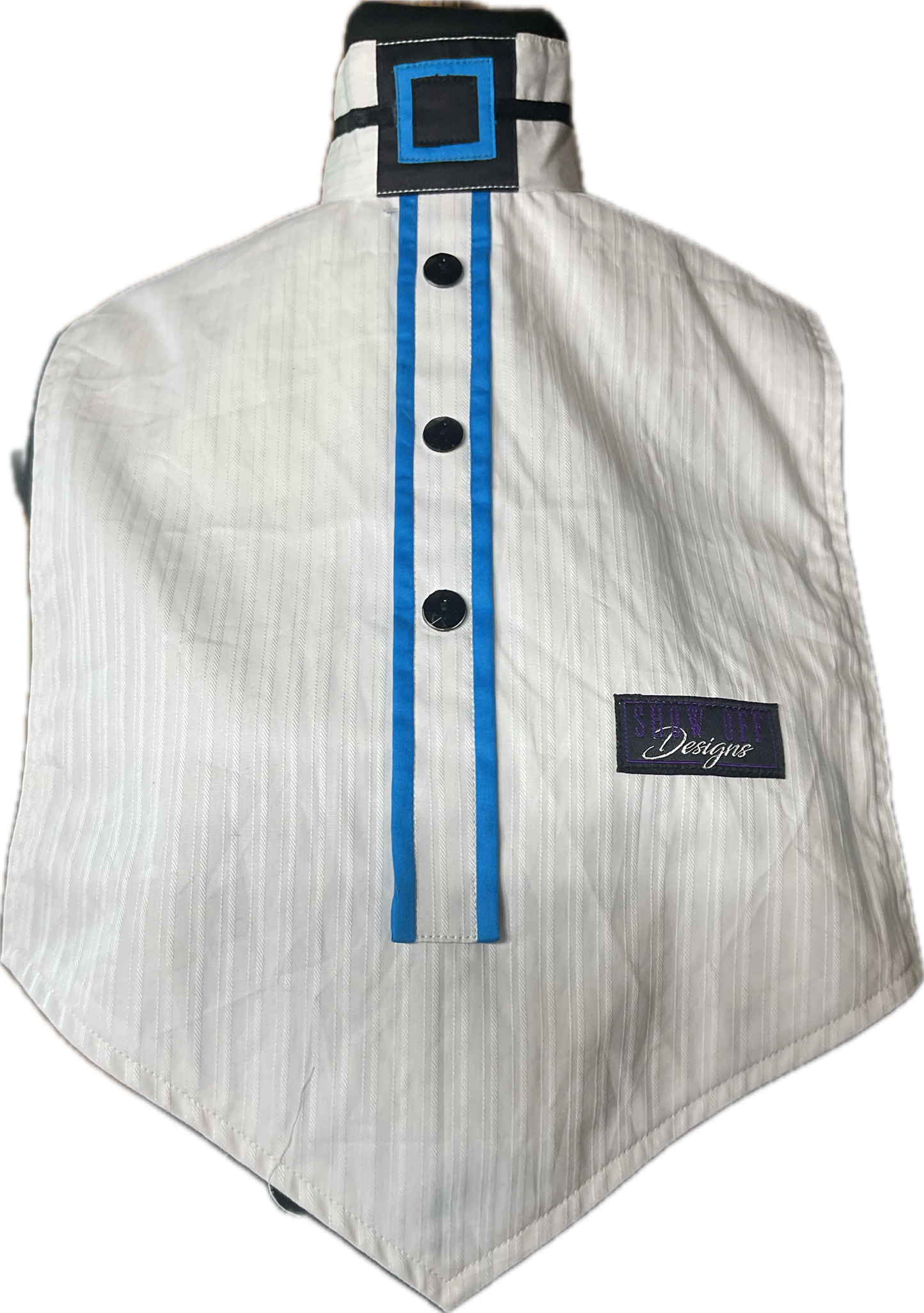 People have been asking, so we made dickies. Easy wear and easy to change. Velcro collar to make it simple to get dressed in a hurry. All one size collar. Velcro may be moved to make a tighter closure if needed.