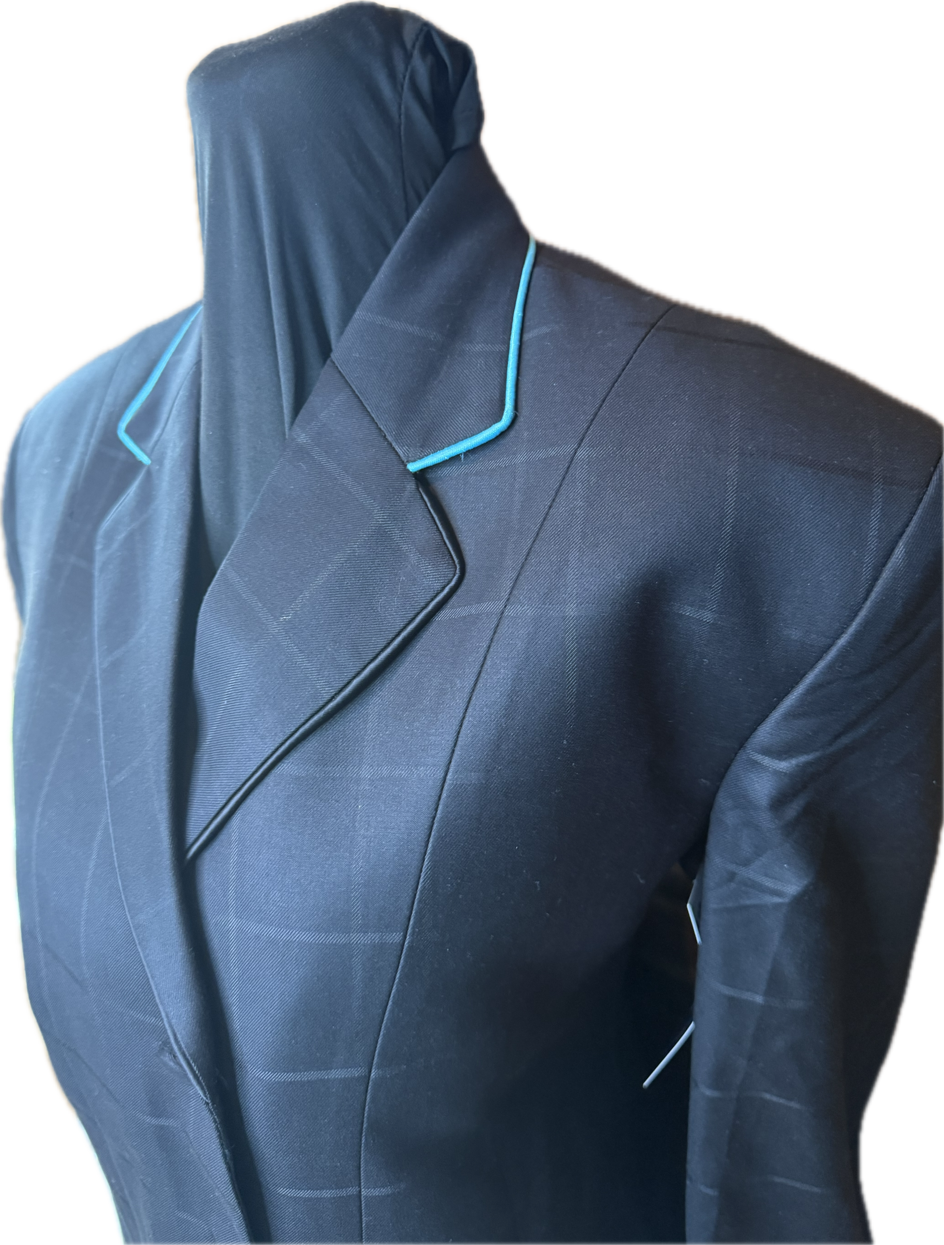 *40 Bust* Black Plaid with Aqua Piping