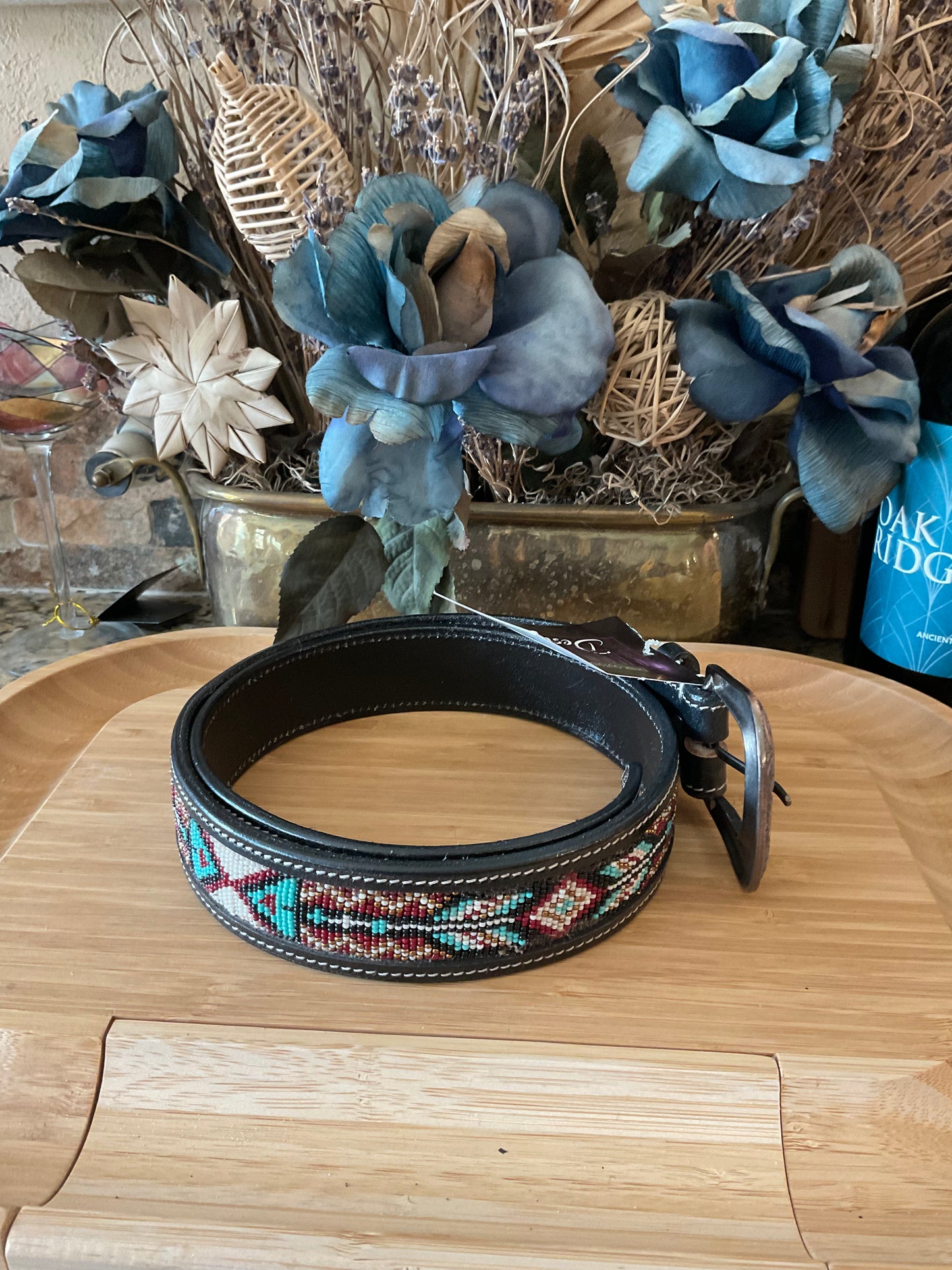 42" Beaded belt - black leather #7