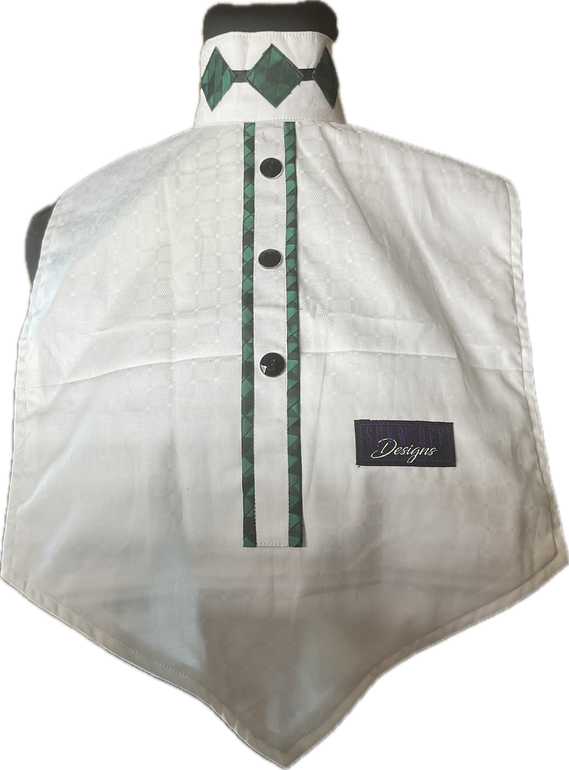 People have been asking, so we made dickies. Easy wear and easy to change. Velcro collar to make it simple to get dressed in a hurry. All one size collar. Velcro may be moved to make a tighter closure if needed.