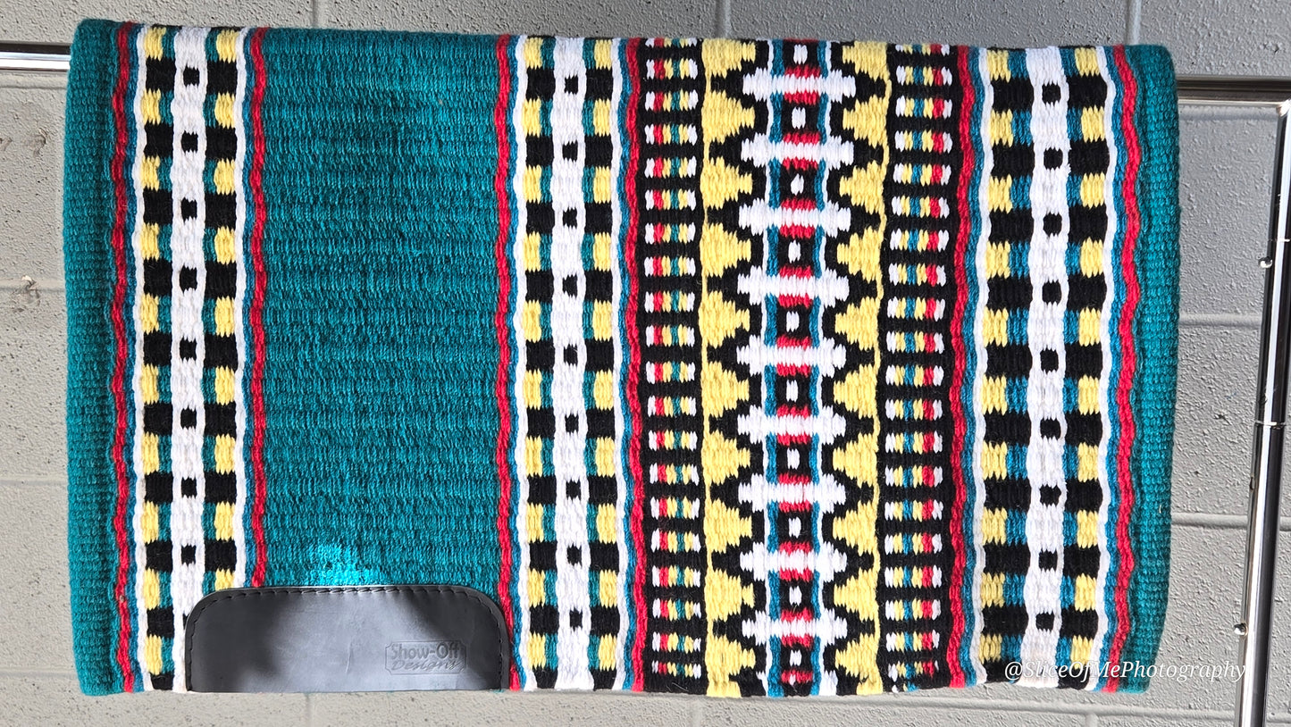 751 Oversized Saddle Blanket Teal, Red, Black, White Yellow