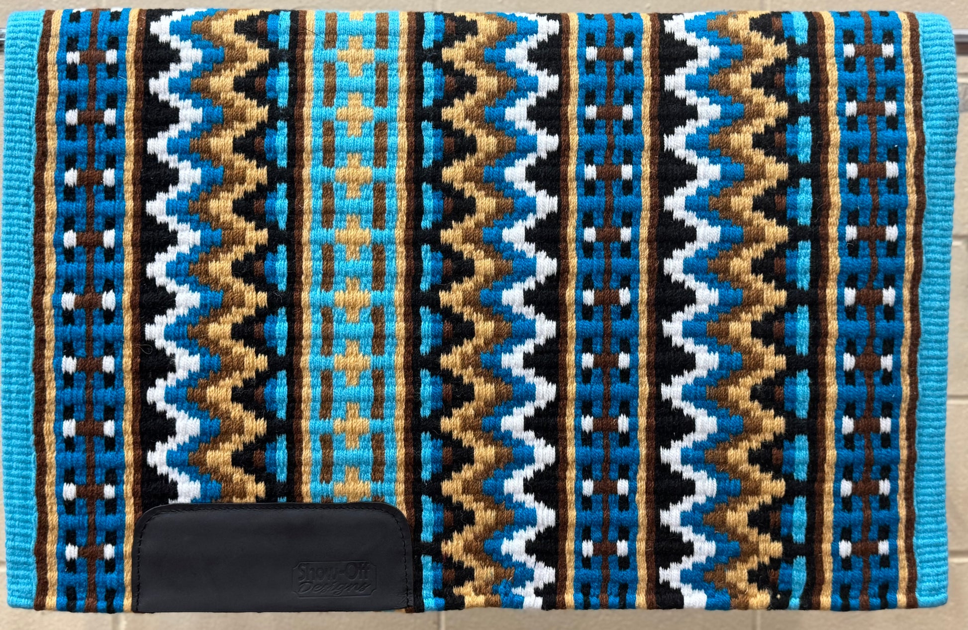 B346 Oversized Saddle Blanket Soft Turquoise, Chestnut Brown, Seductive Honey, Turquoise, Raw Umber, Black, White