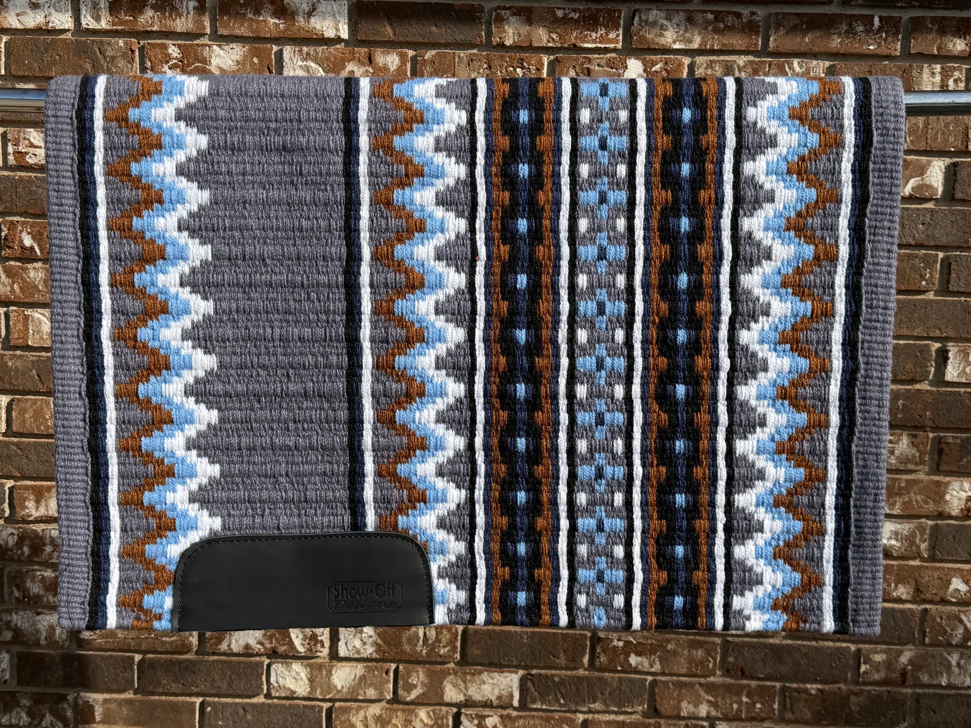 OVERSIZED SADDLE BLANKET WITH WEAR LEATHERS AND CARRYING CASE.