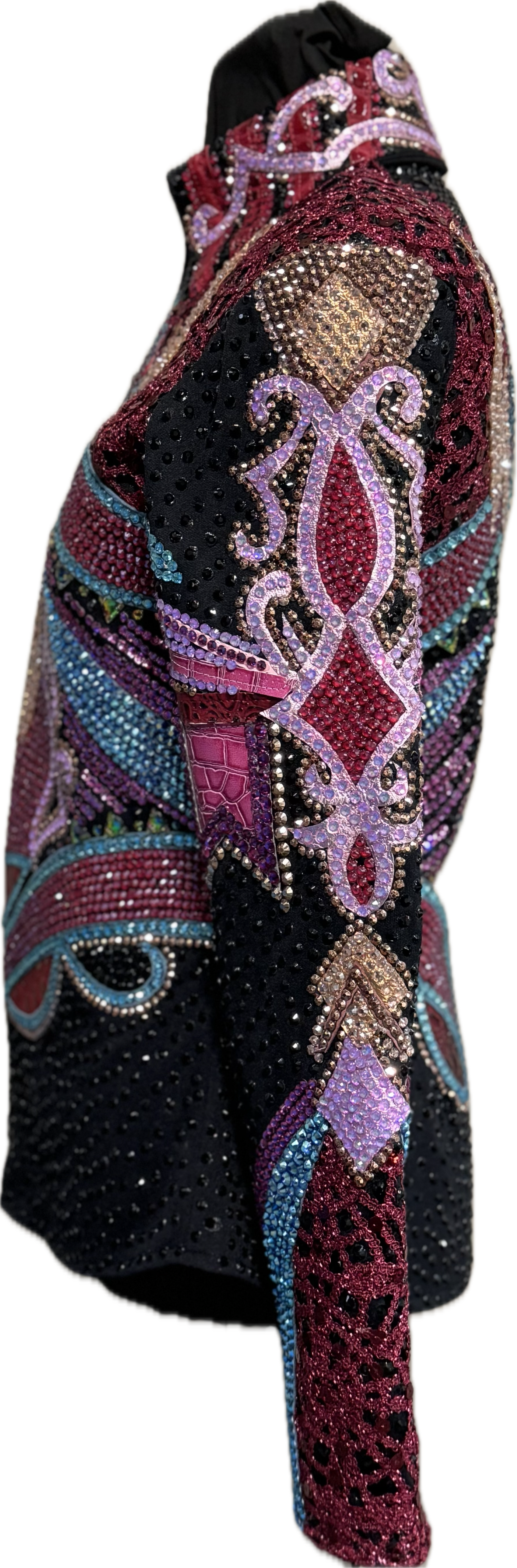 Extra Small Black Showmanship Jacket with Burgundy, Pink and Blues