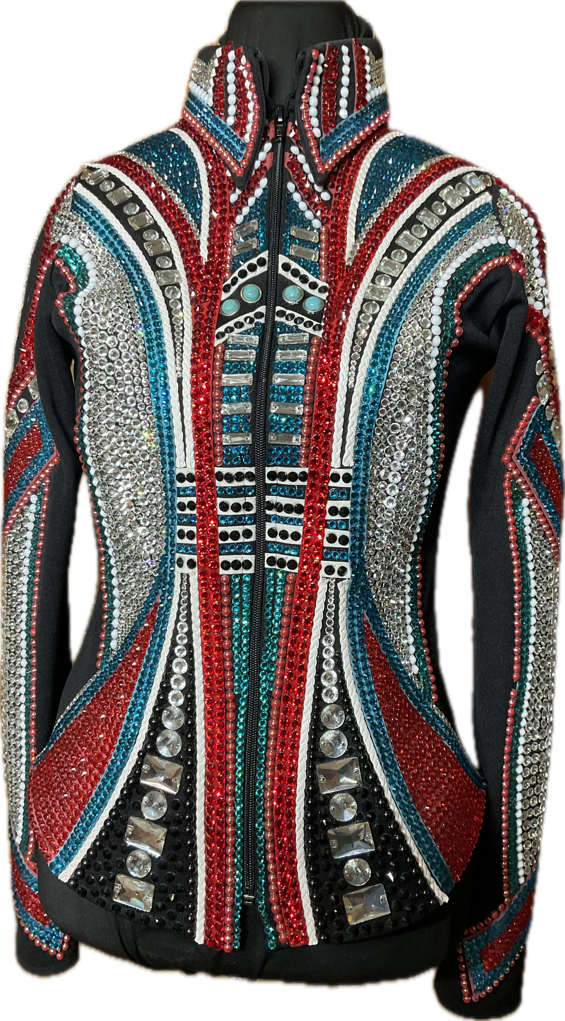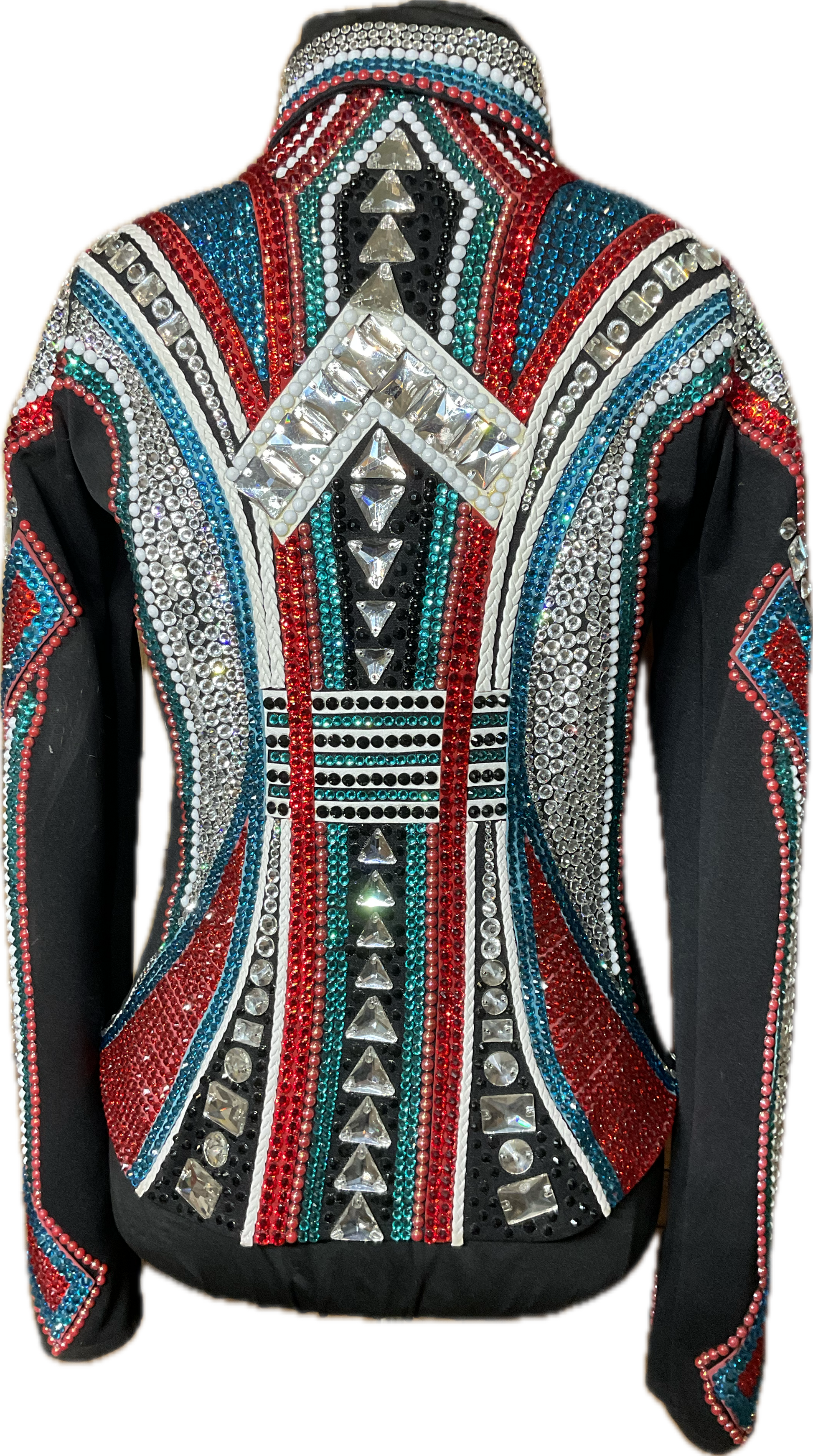 Extra Small Black Showmanship Jacket with Red and Turquoise Accents