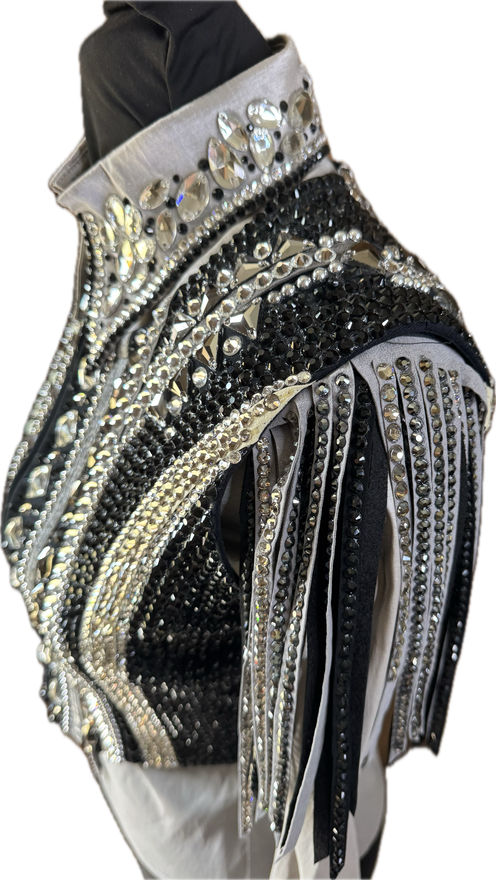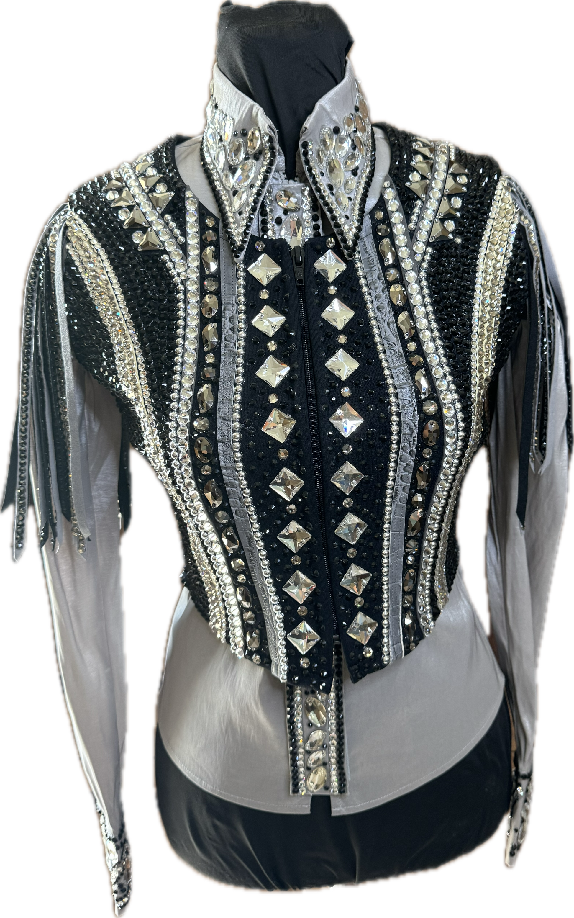 Extra Small Vest Set black and grey with matching day shirt. vest has detachable fringe