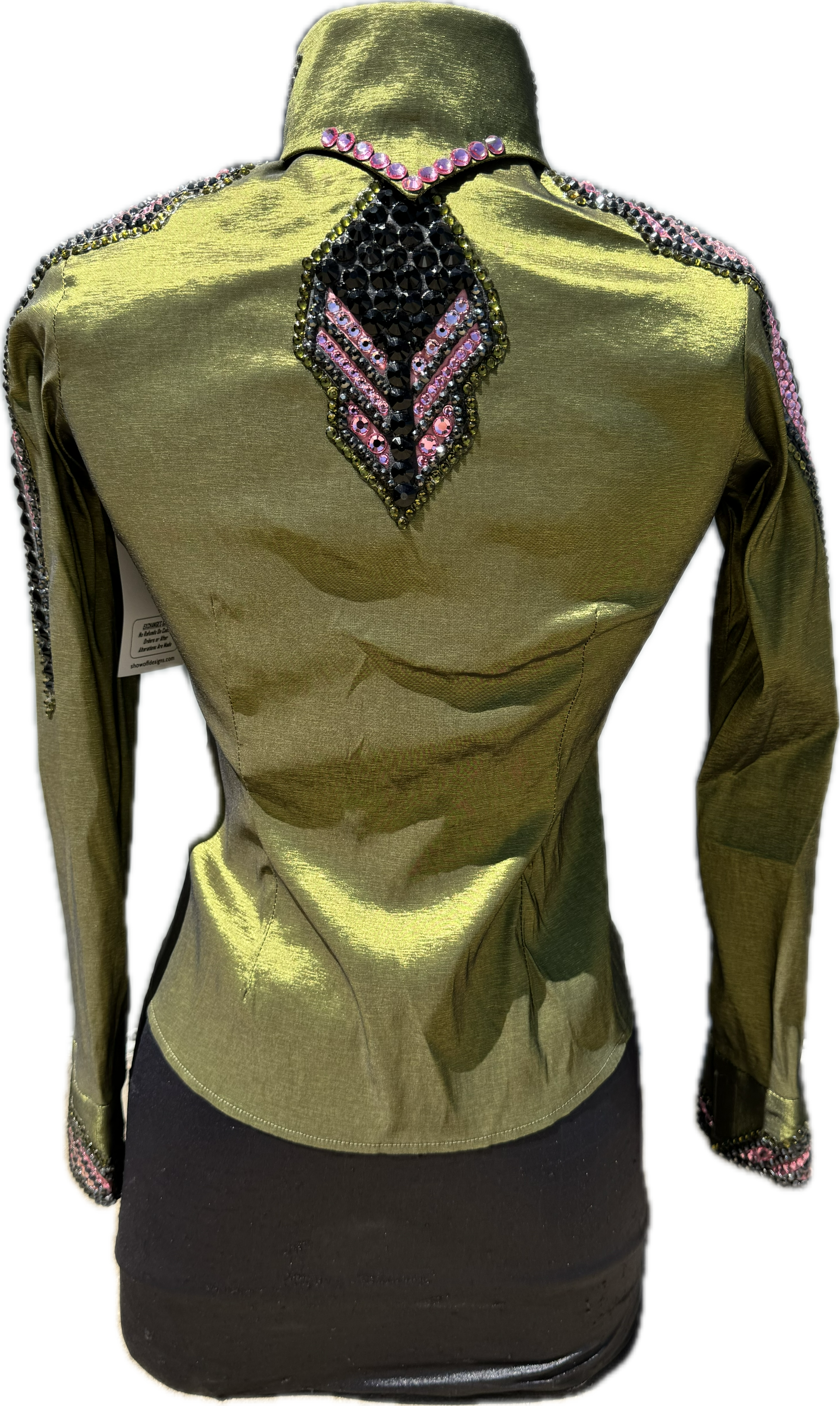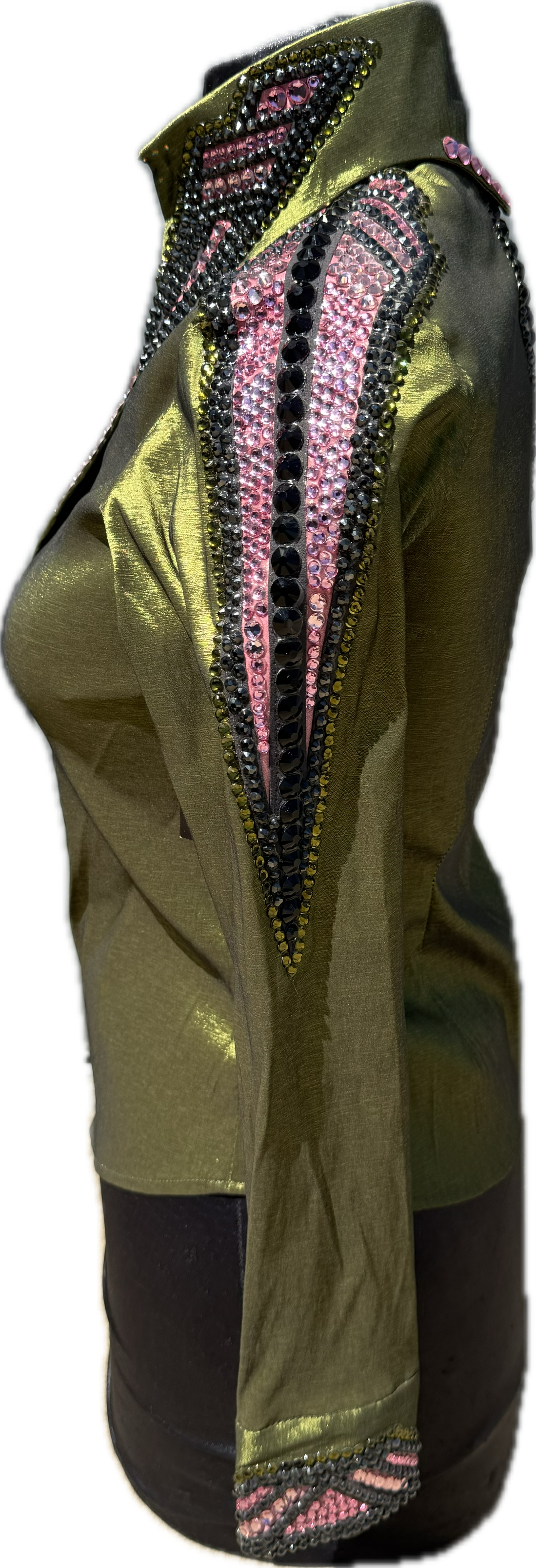 Kids 14 Olive Green Stretch Taffeta with Pink, Black and Charcoal