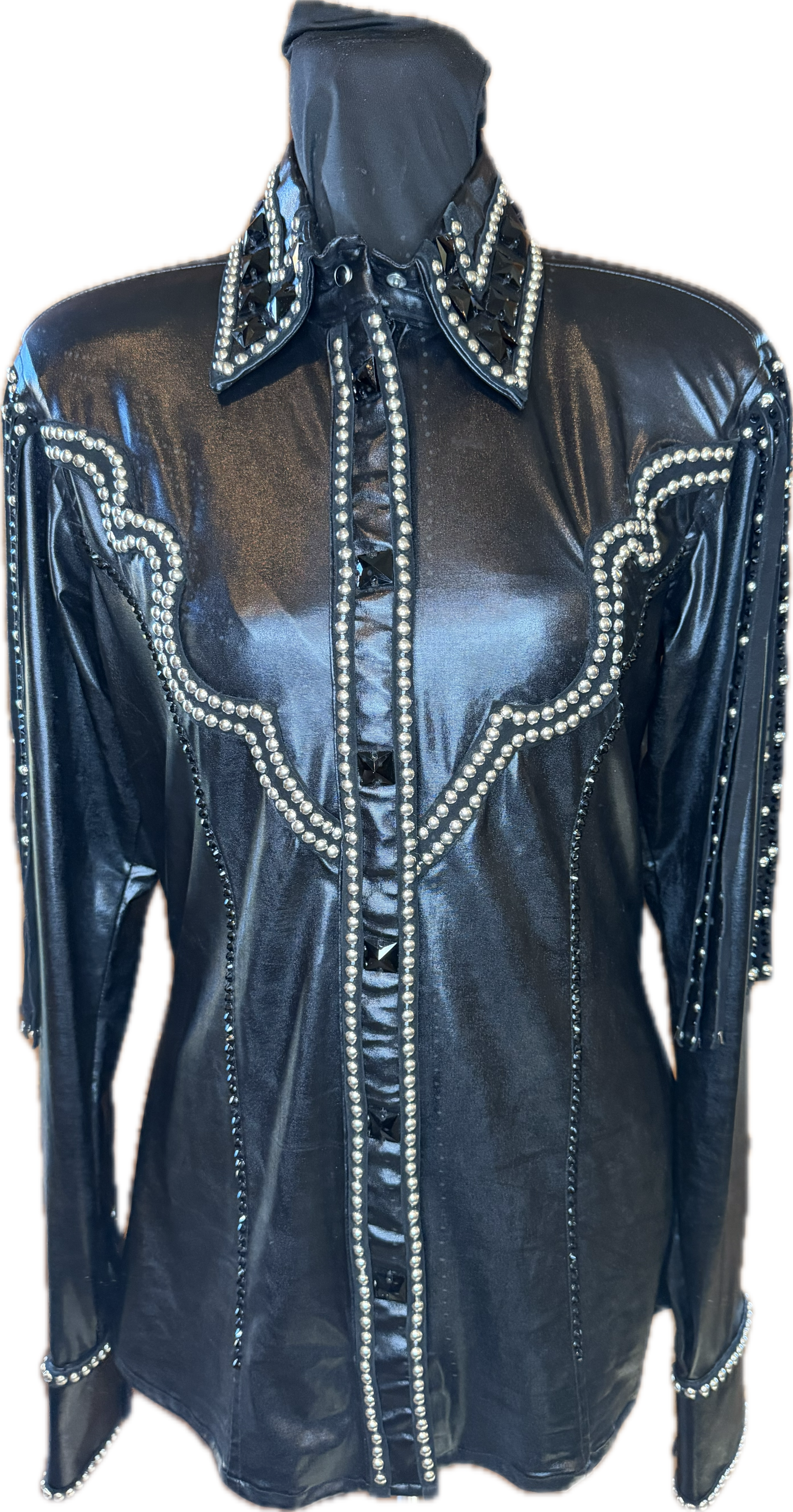 Medium Black Lycra Day Shirt with Shoulder Fringe with Silver and Black
