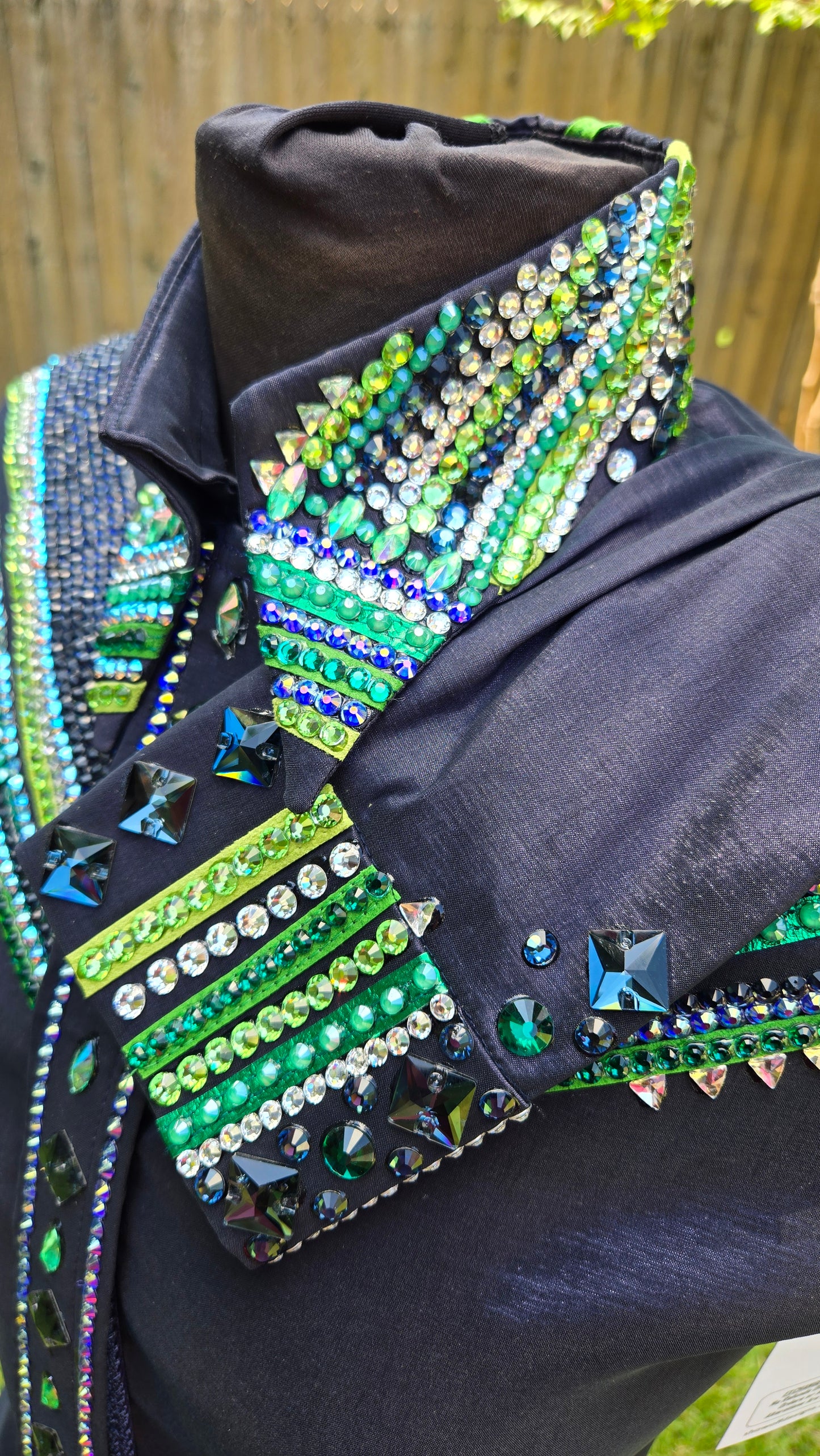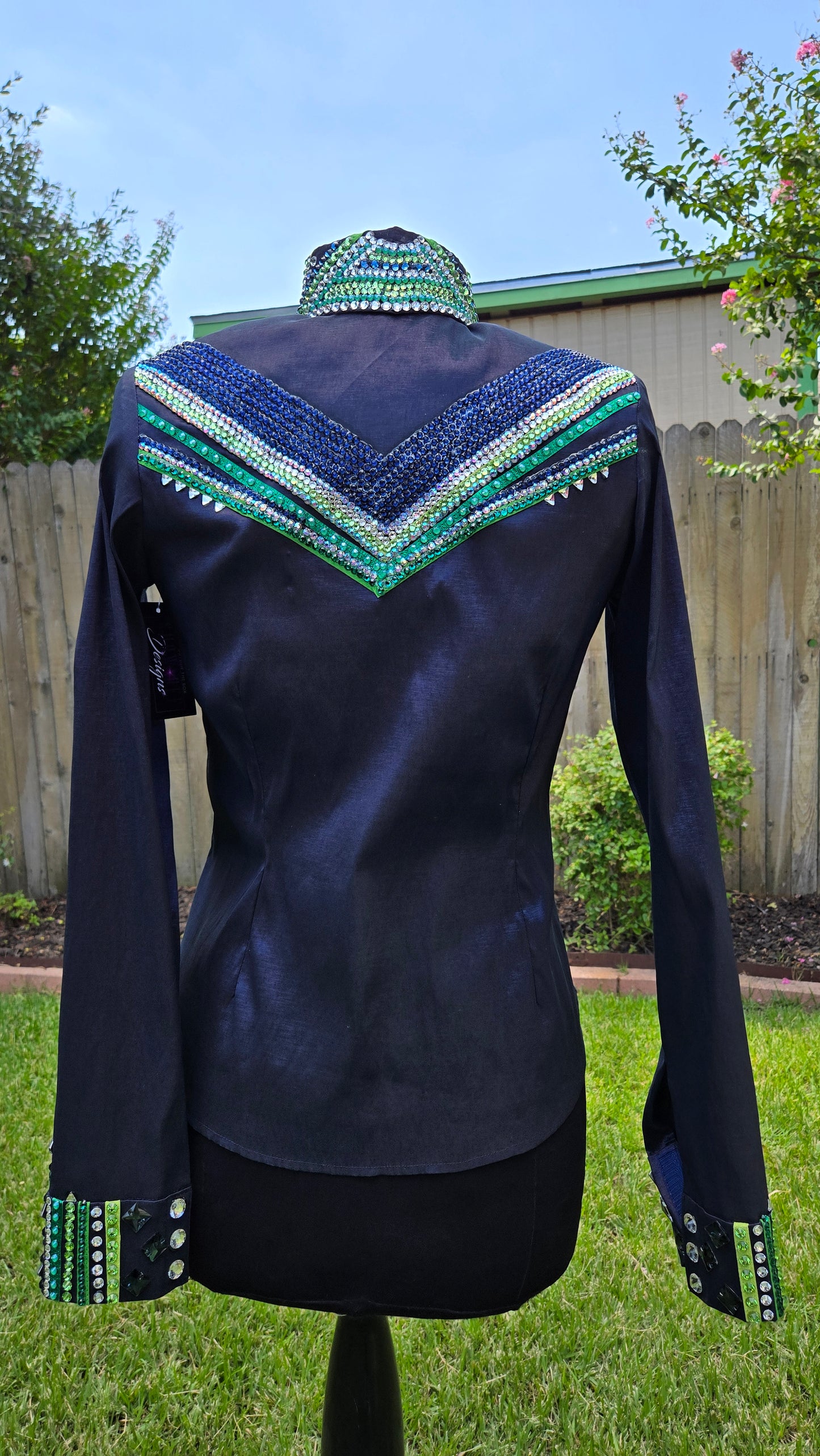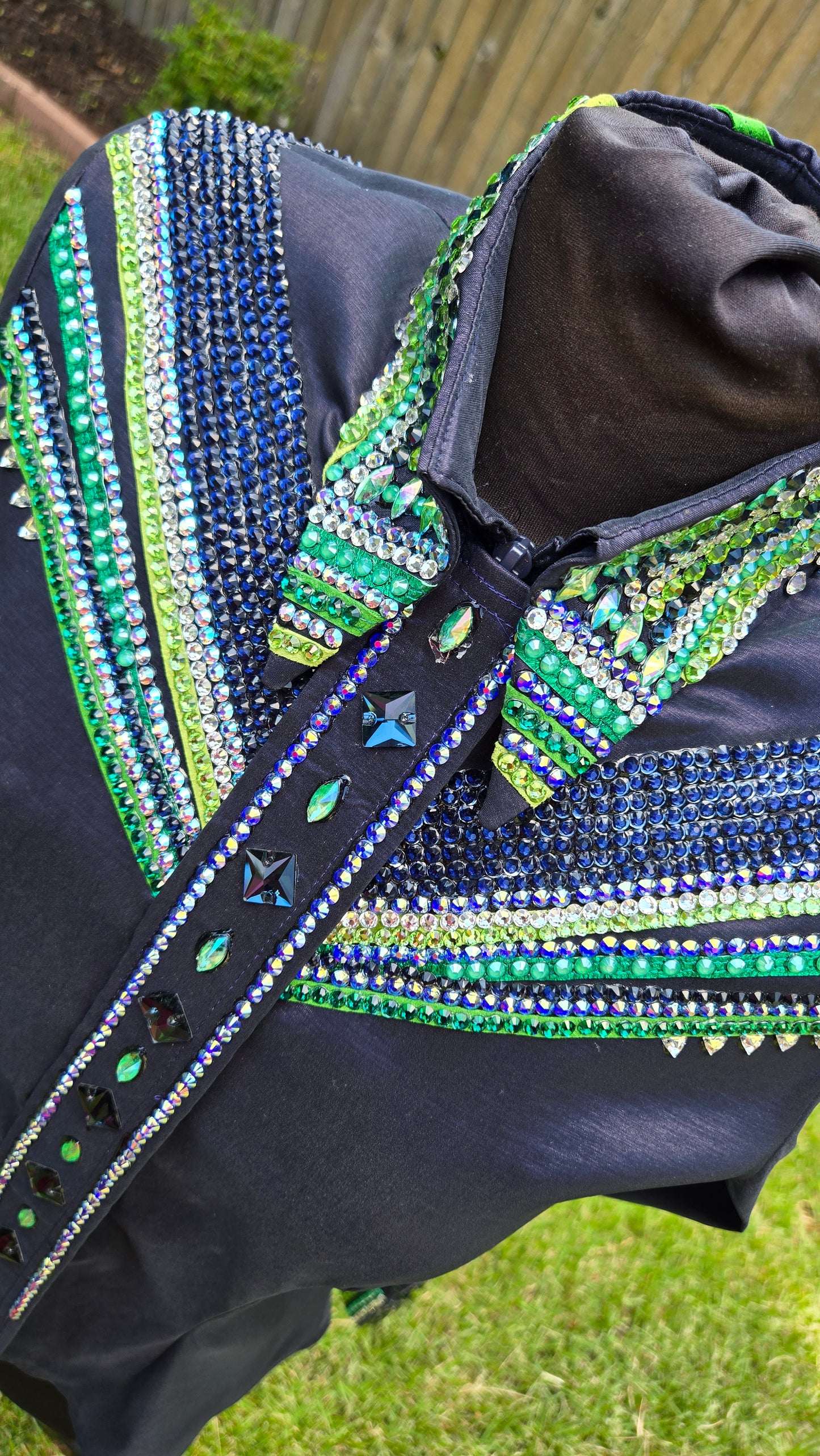 Medium Navy Stretch Taffeta Day Shirt with Purple, Kelly Green, Pistachio,