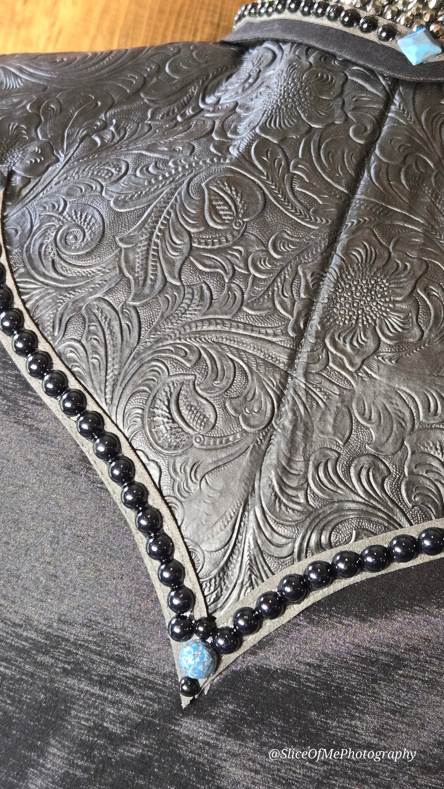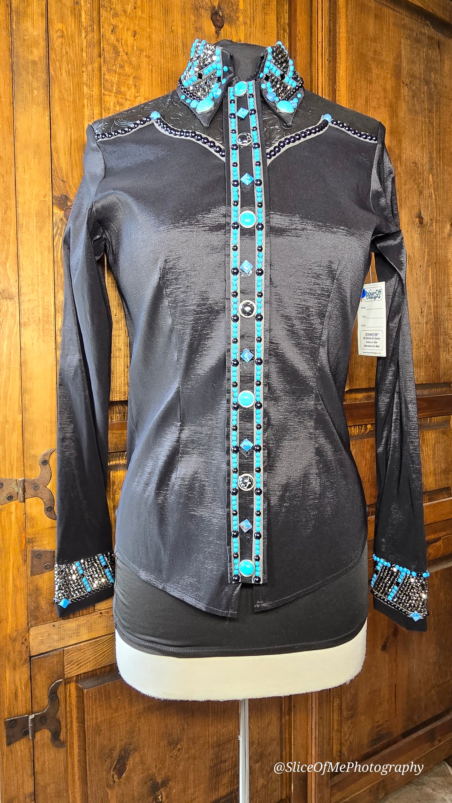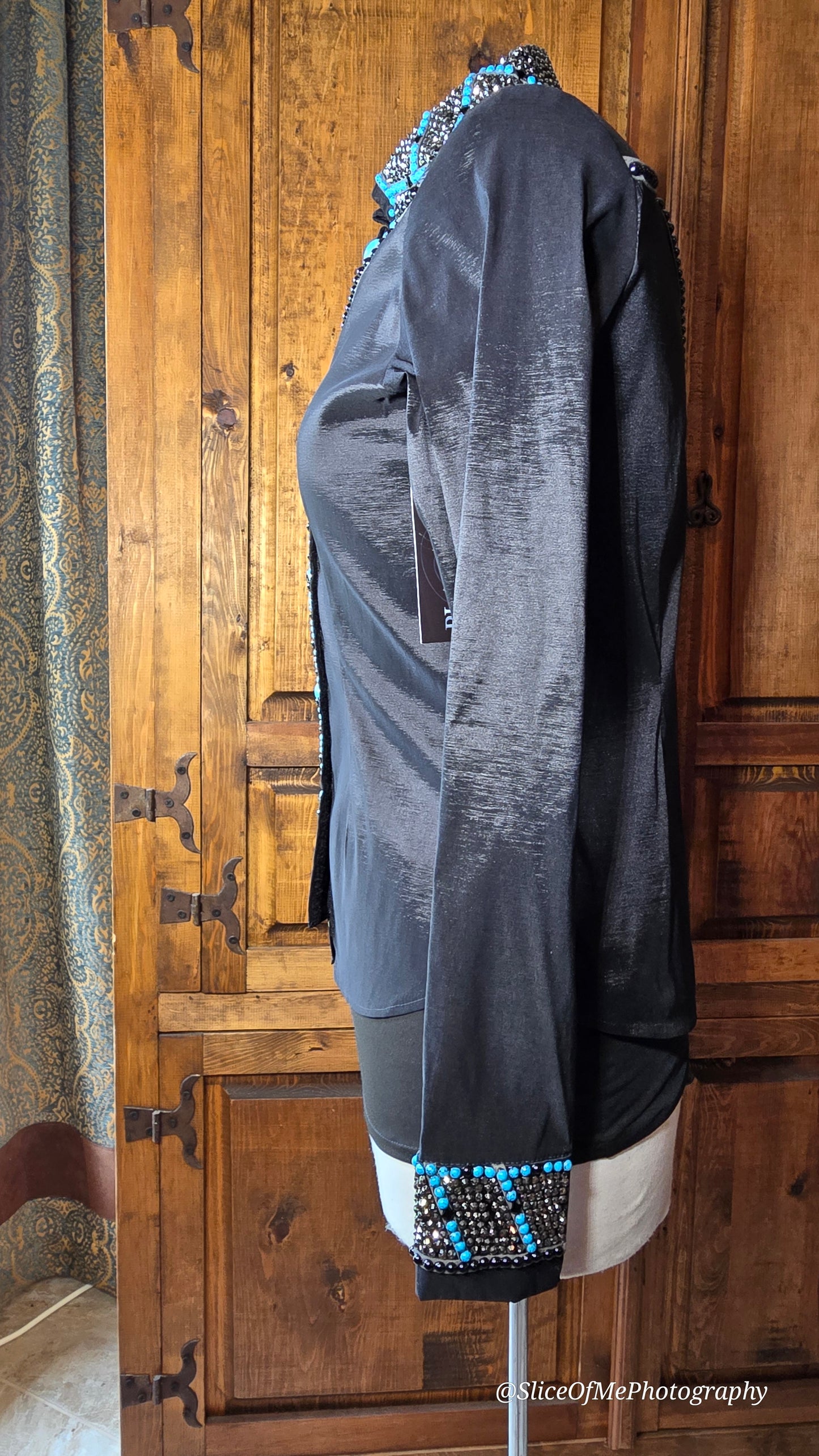 Medium Stretch Taffeta Black Day Shirt with turquois, matte metallic silver and leather texture