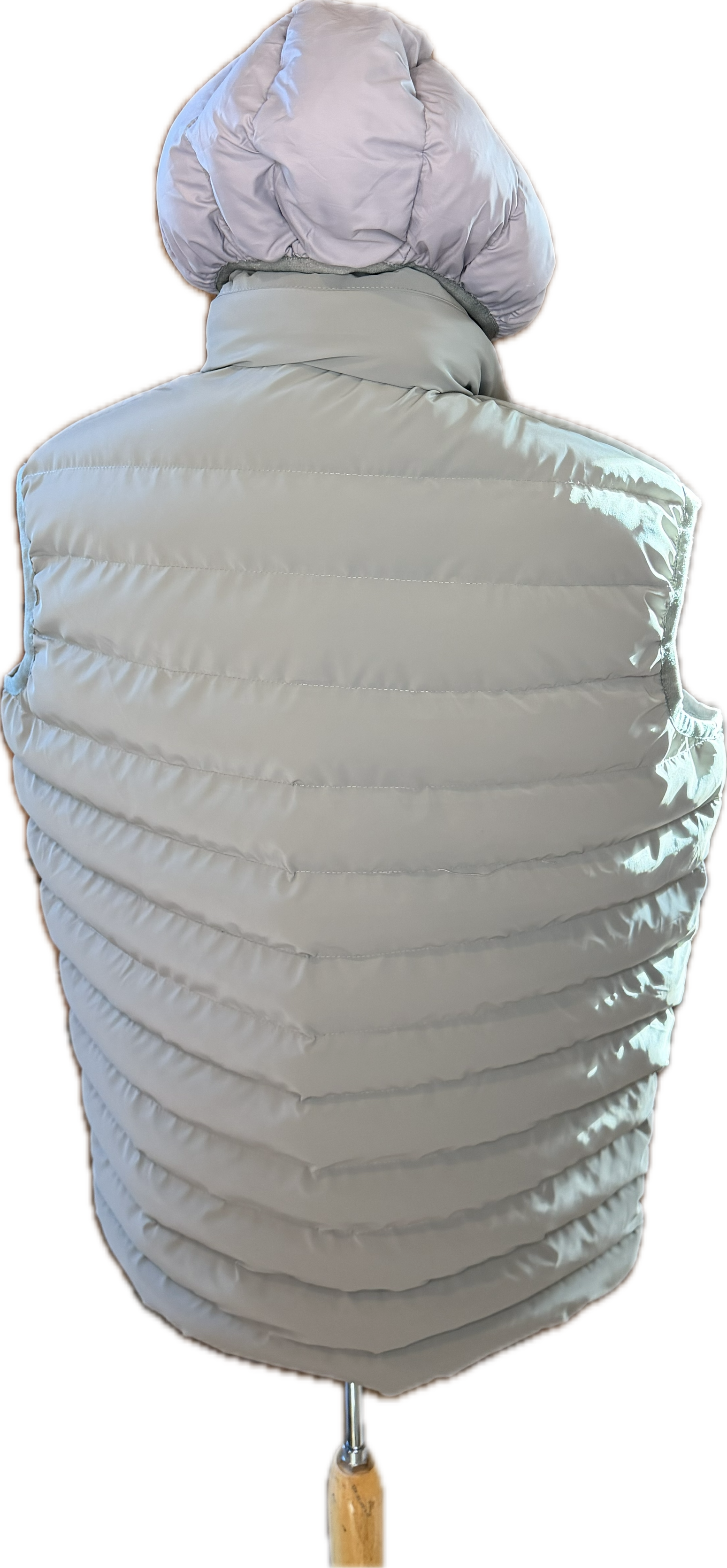 Adidas Performance Puff Vest in Taupe Color. Detachable hood and zip up front. 2 Pockets on the outside and 2 on the inside. Weathergear Osciallator Series Vest.