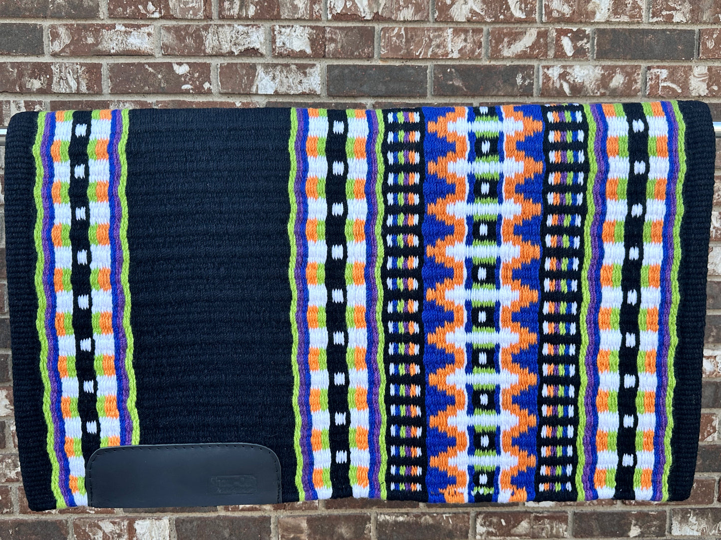 46. Oversized saddle blanket black lime green purple orange royal blue white