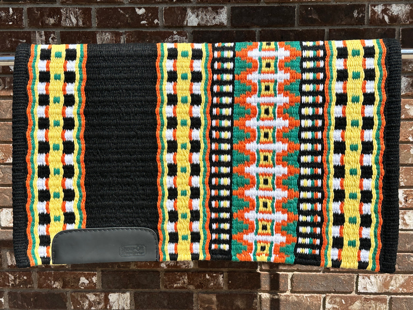 61. Oversized saddle blanket black yellow orange white Kelly green