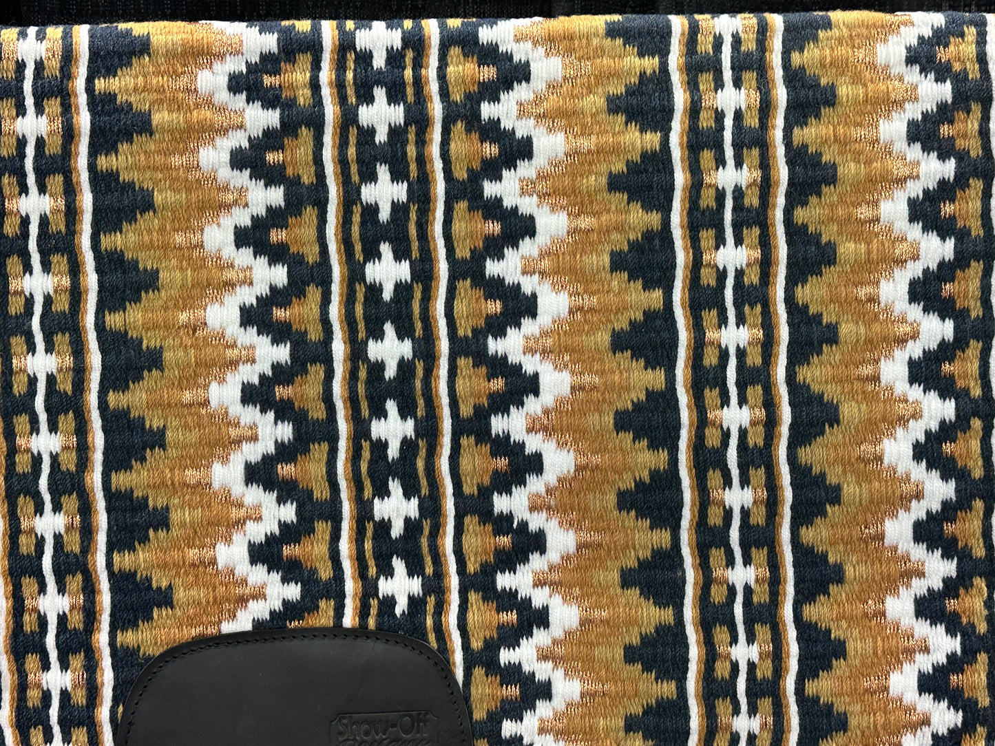 104. Oversized saddle blanket navy white French tan caramel matte metallic copper