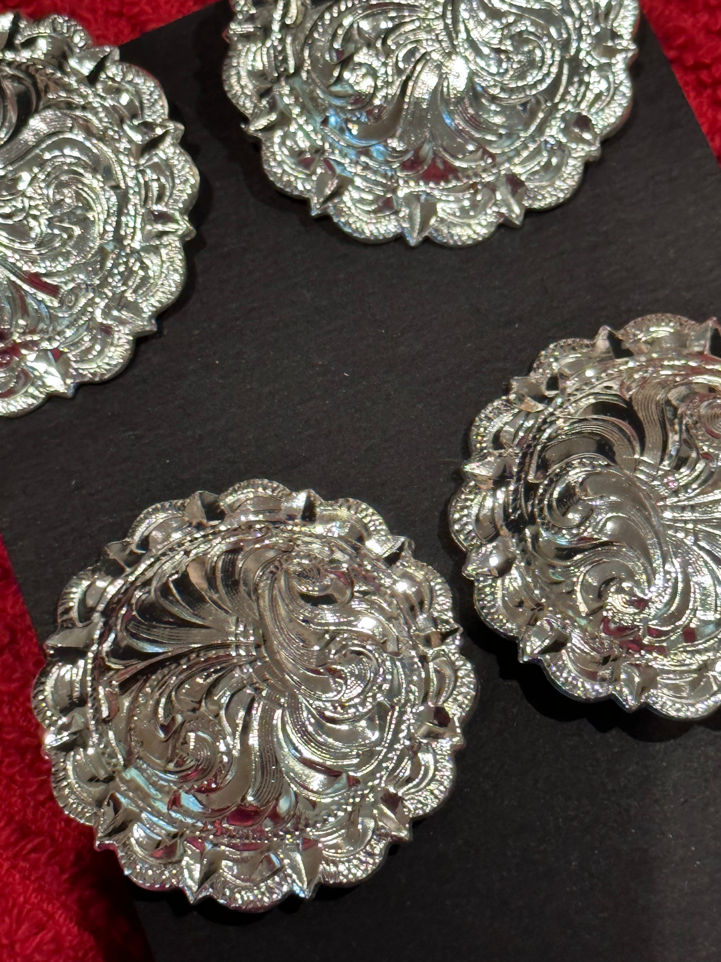 Absolutely stunning silver blanket concho number holders. Our number clips are sturdy and well built. Fully engraved with design.
