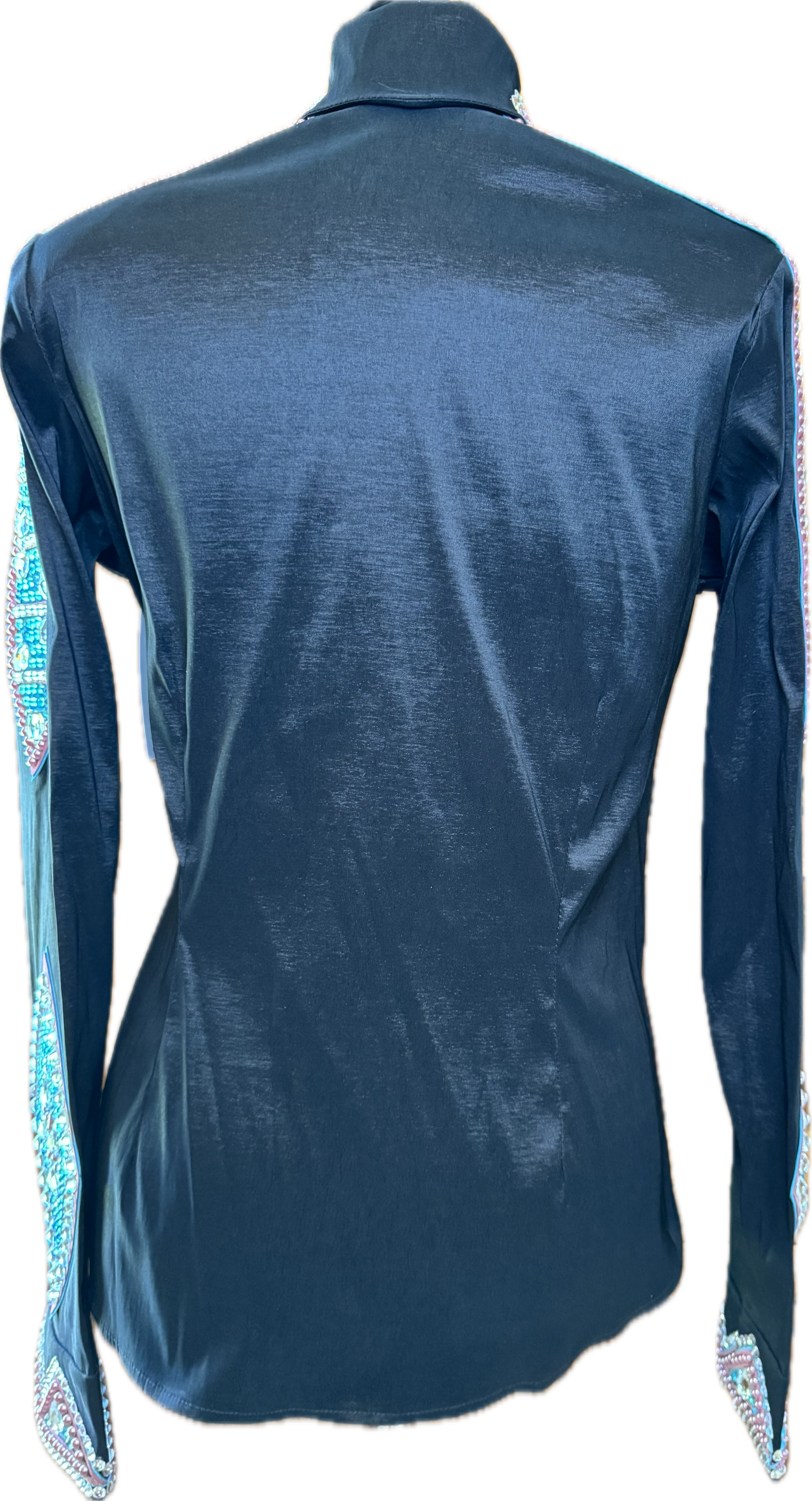 Size Medium Black Stretch Taffeta with Mauve and Aqua Accents
