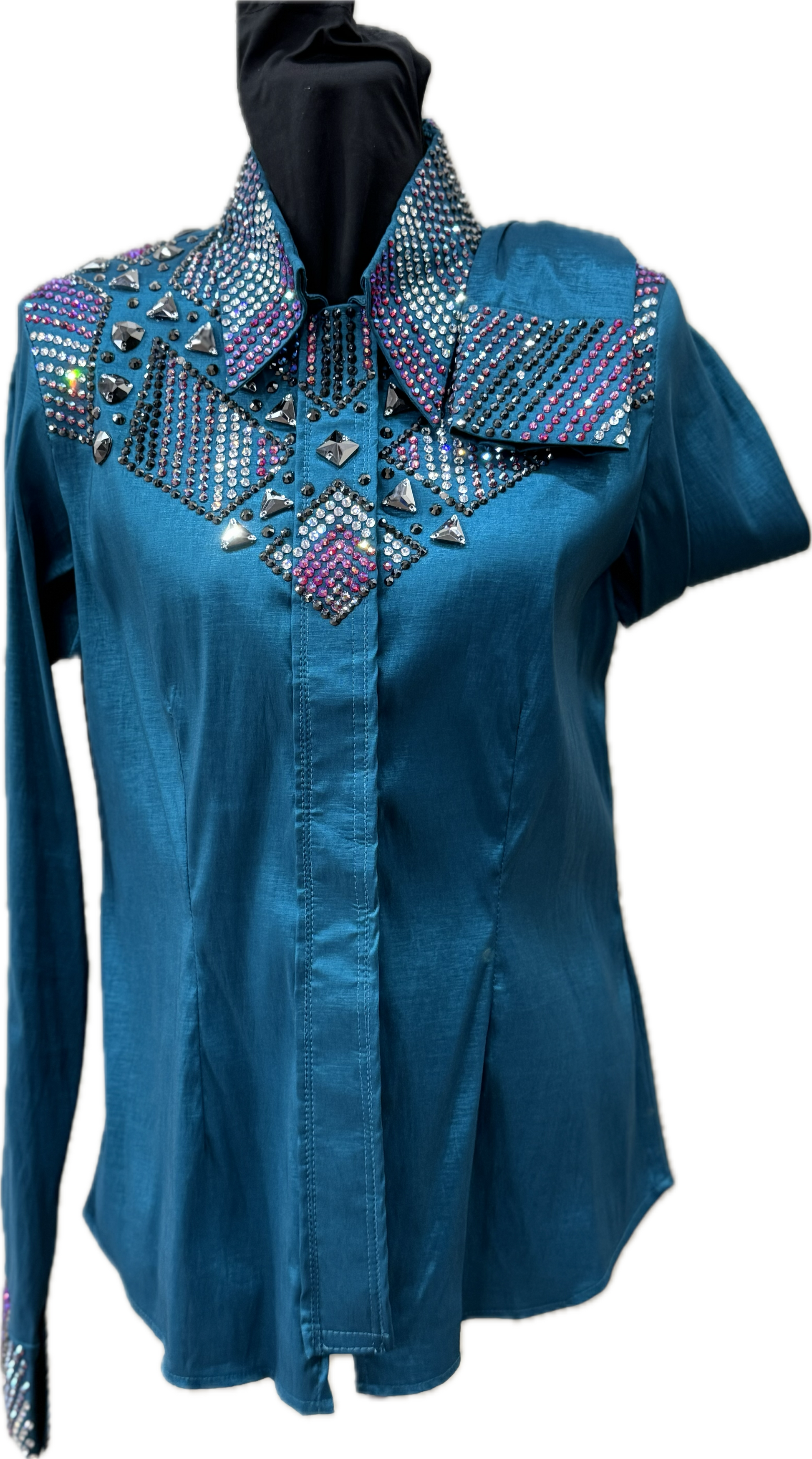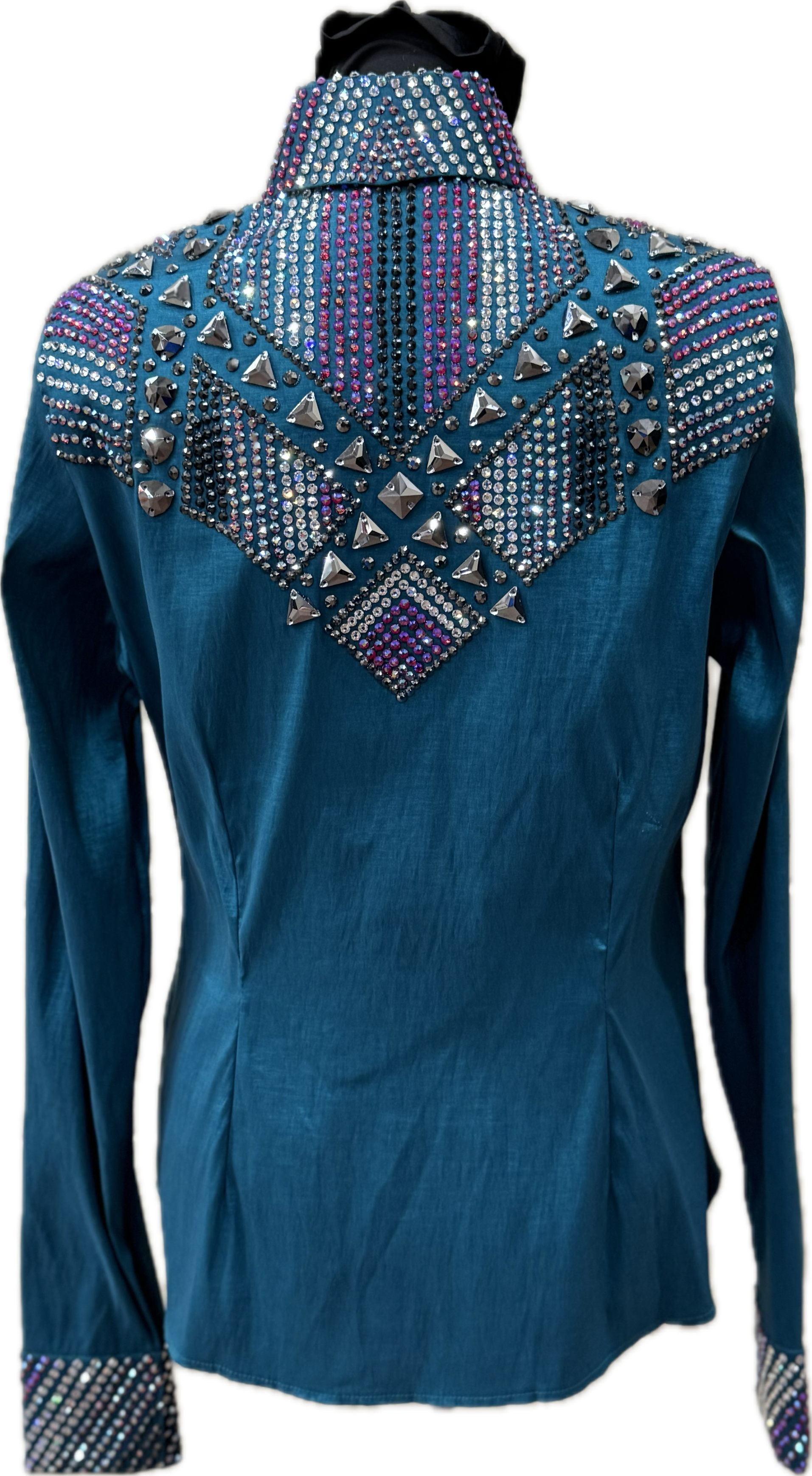 Size Medium Dark Teal Strech Taffeta with Gun metal and Siam AB Crystal Design