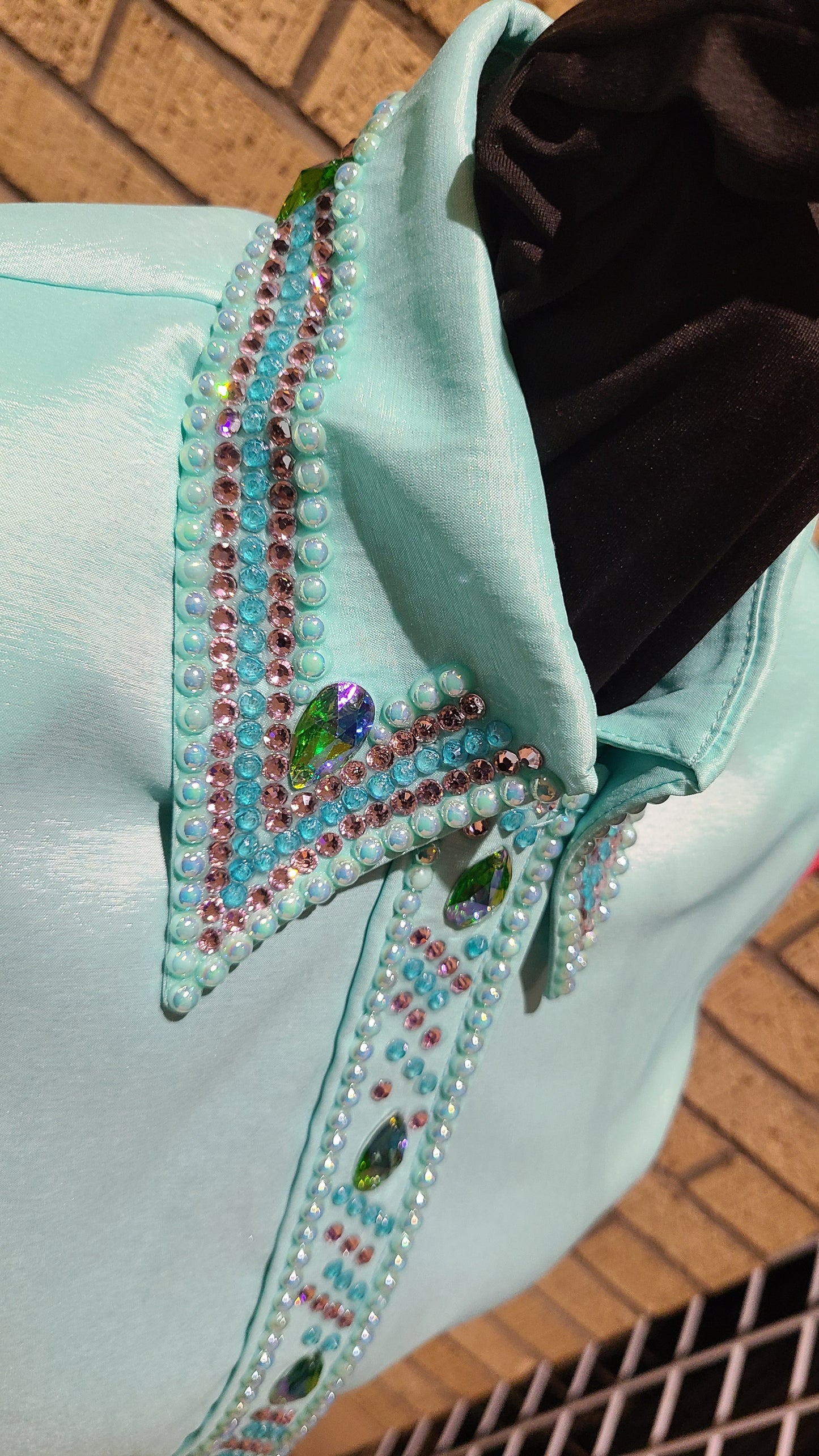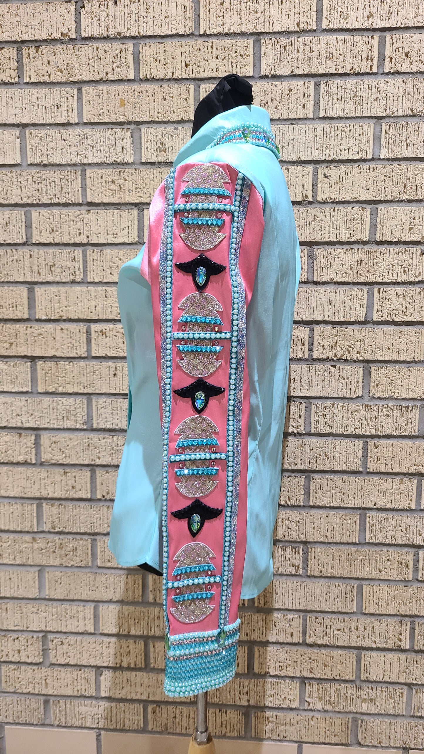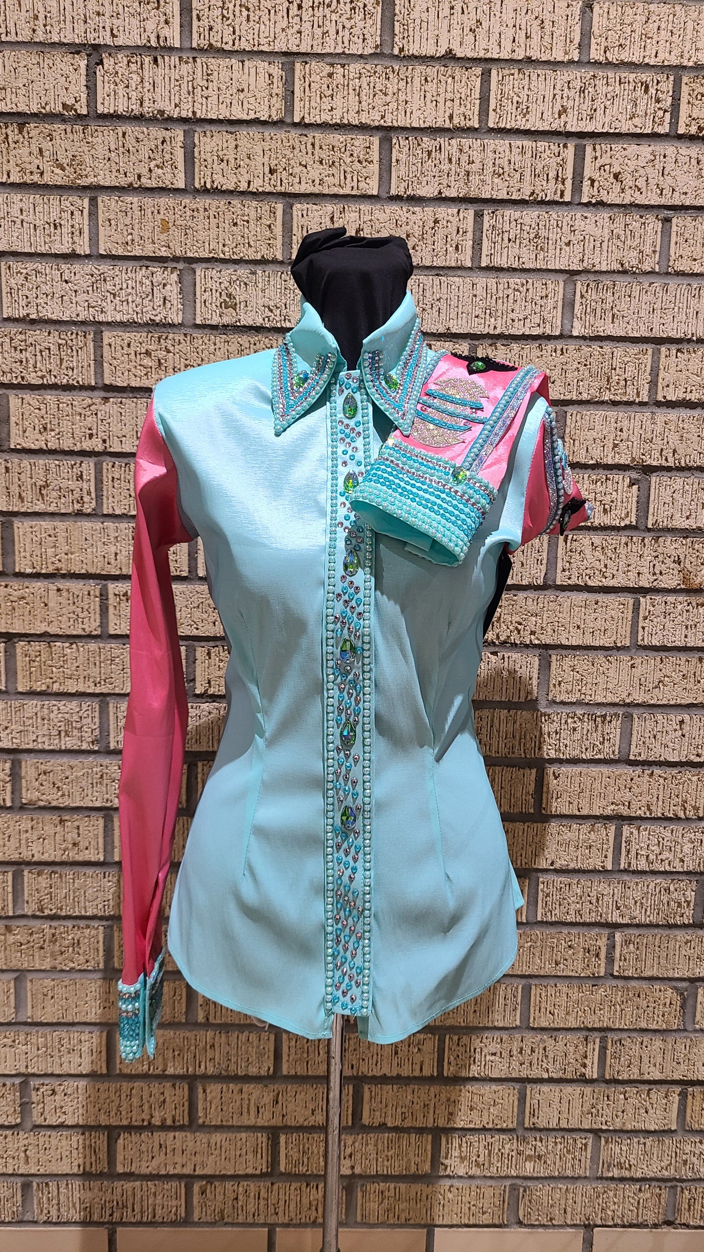 Size medium stretch mint taffeta pink sleeve black accents