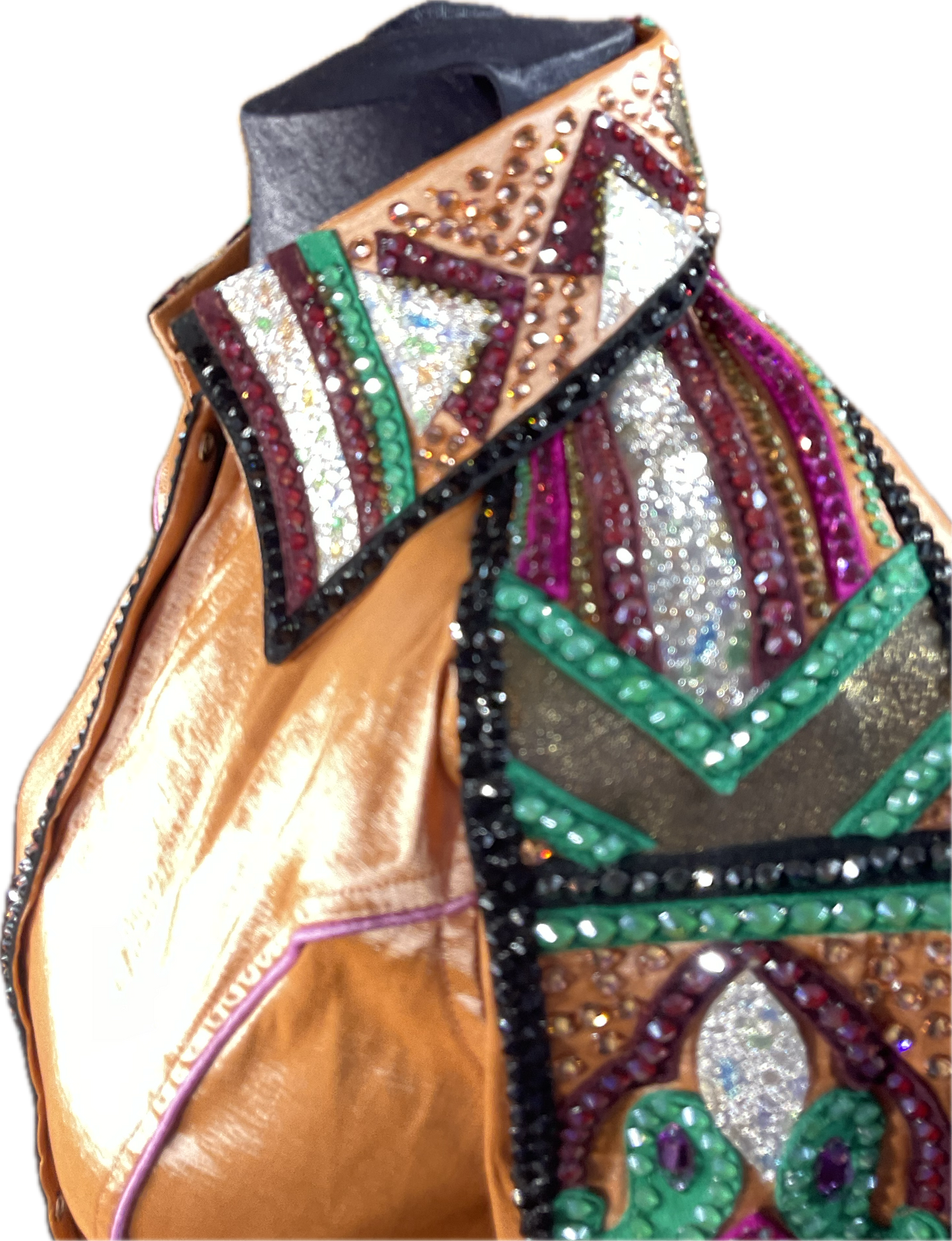 Small dark gold stretch taffeta burgundy, gold, black and green accents