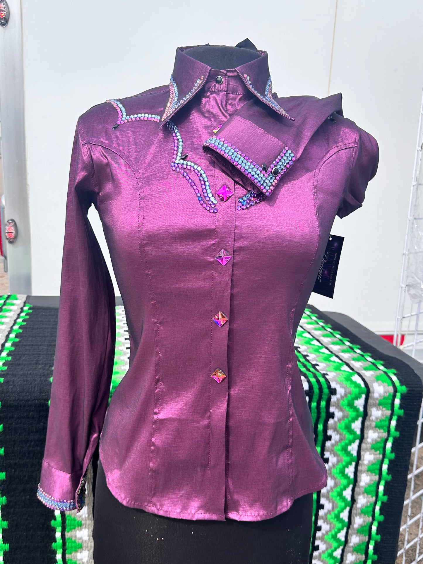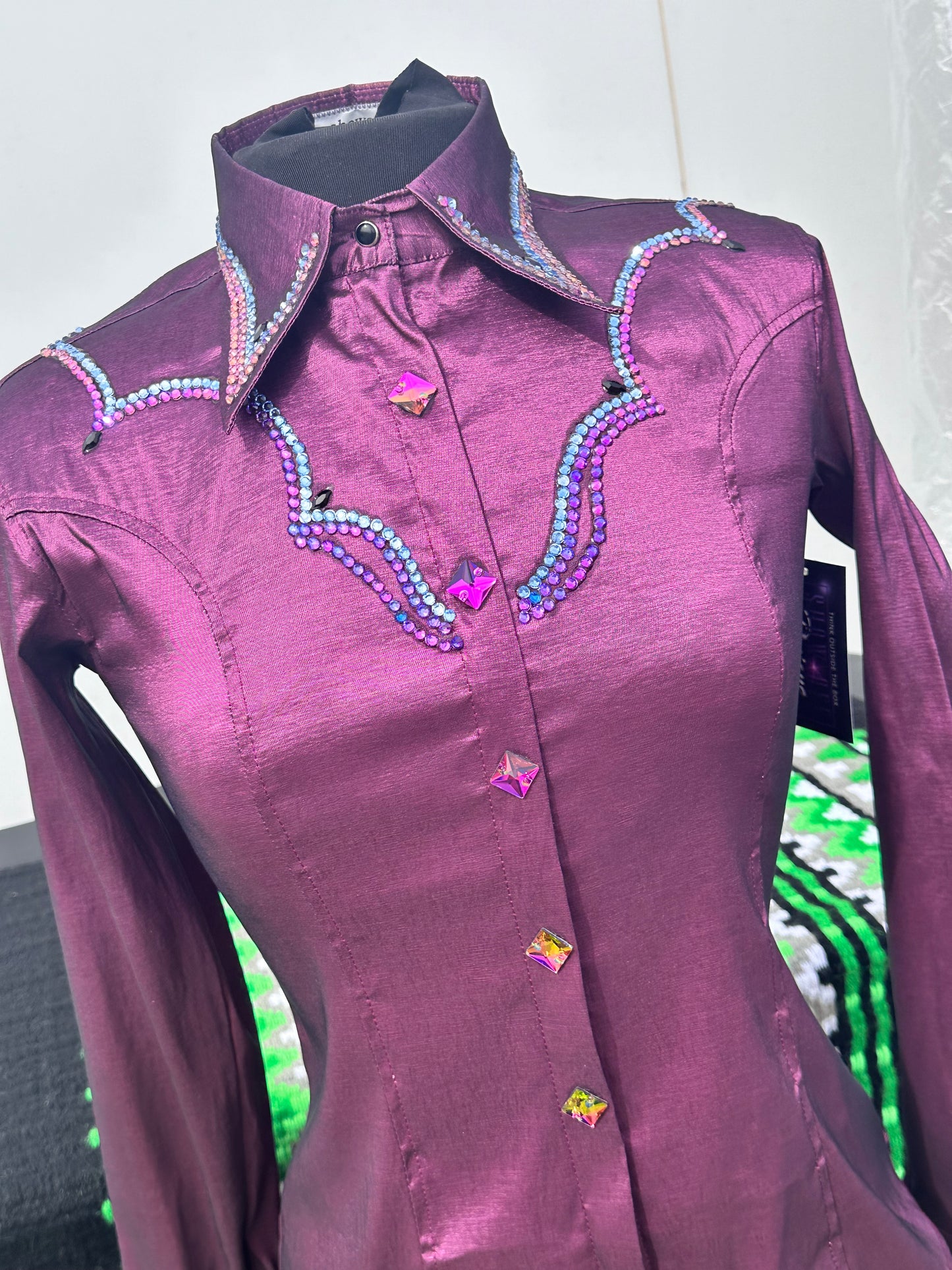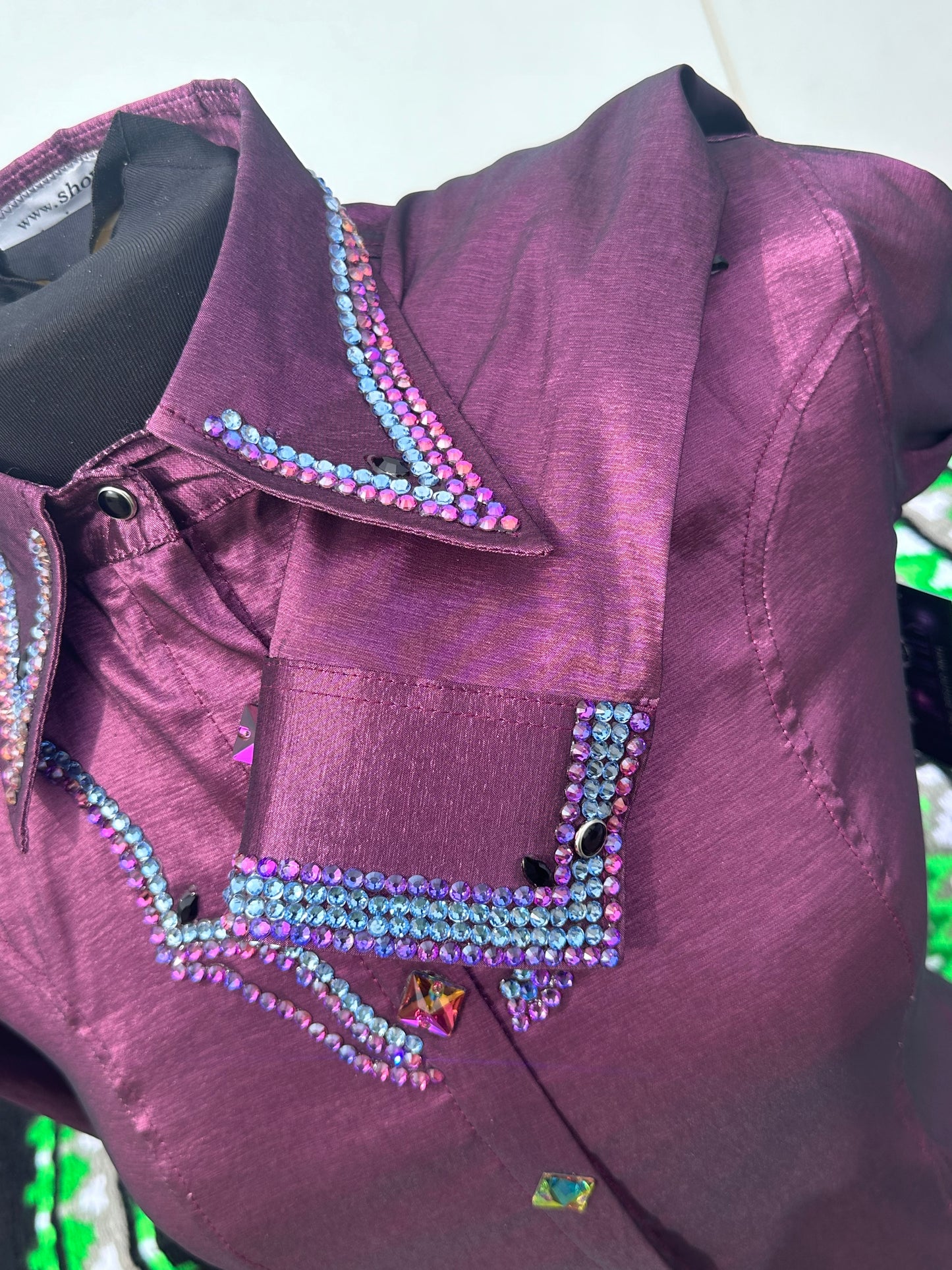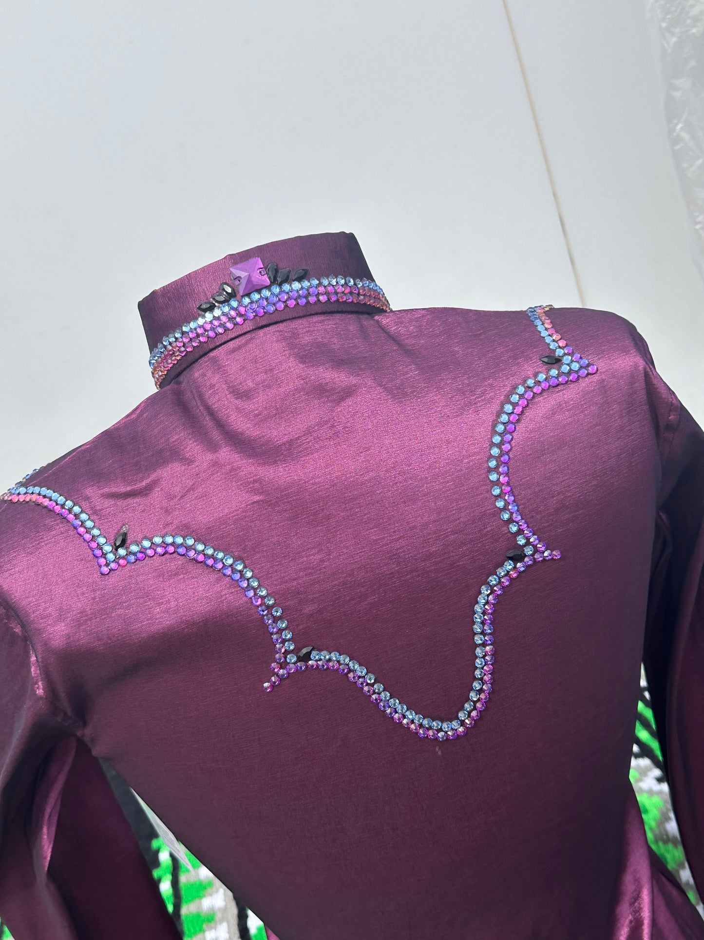 XS day shirt stretch taffeta deep rose purple with purple and light sapphire western yoke
